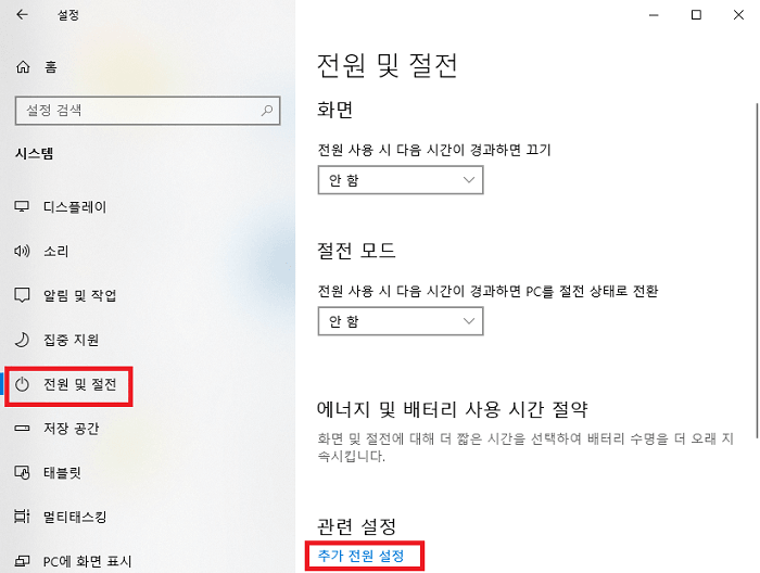 3단계: “관련 설정” -> “추가 전원 설정”을 클릭합니다.