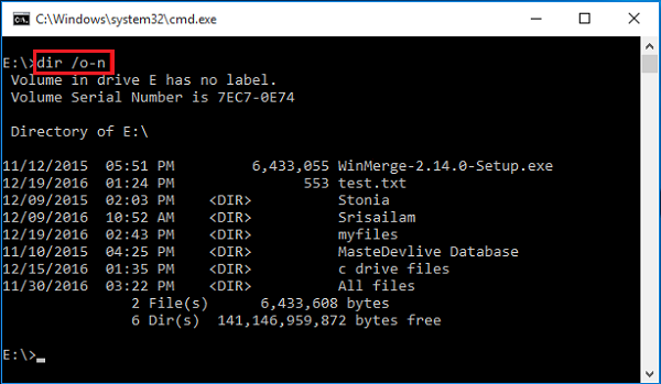 3. 파일 크기 표시:"dir /O:-n "이라고 입력하면 폴더 내의 파일이 크기 순으로 표시됩니다.