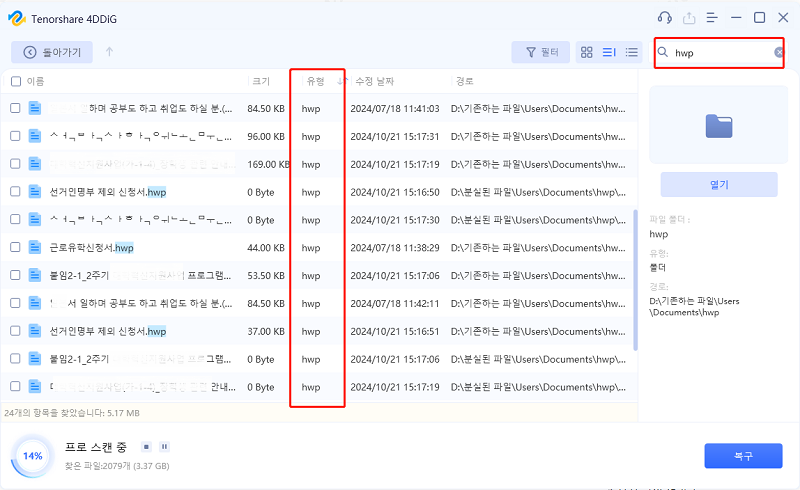 파트 3: 삭제되거나 분실된 한컴 파일 복구하는 방법 (4DDiG Data Recovery)