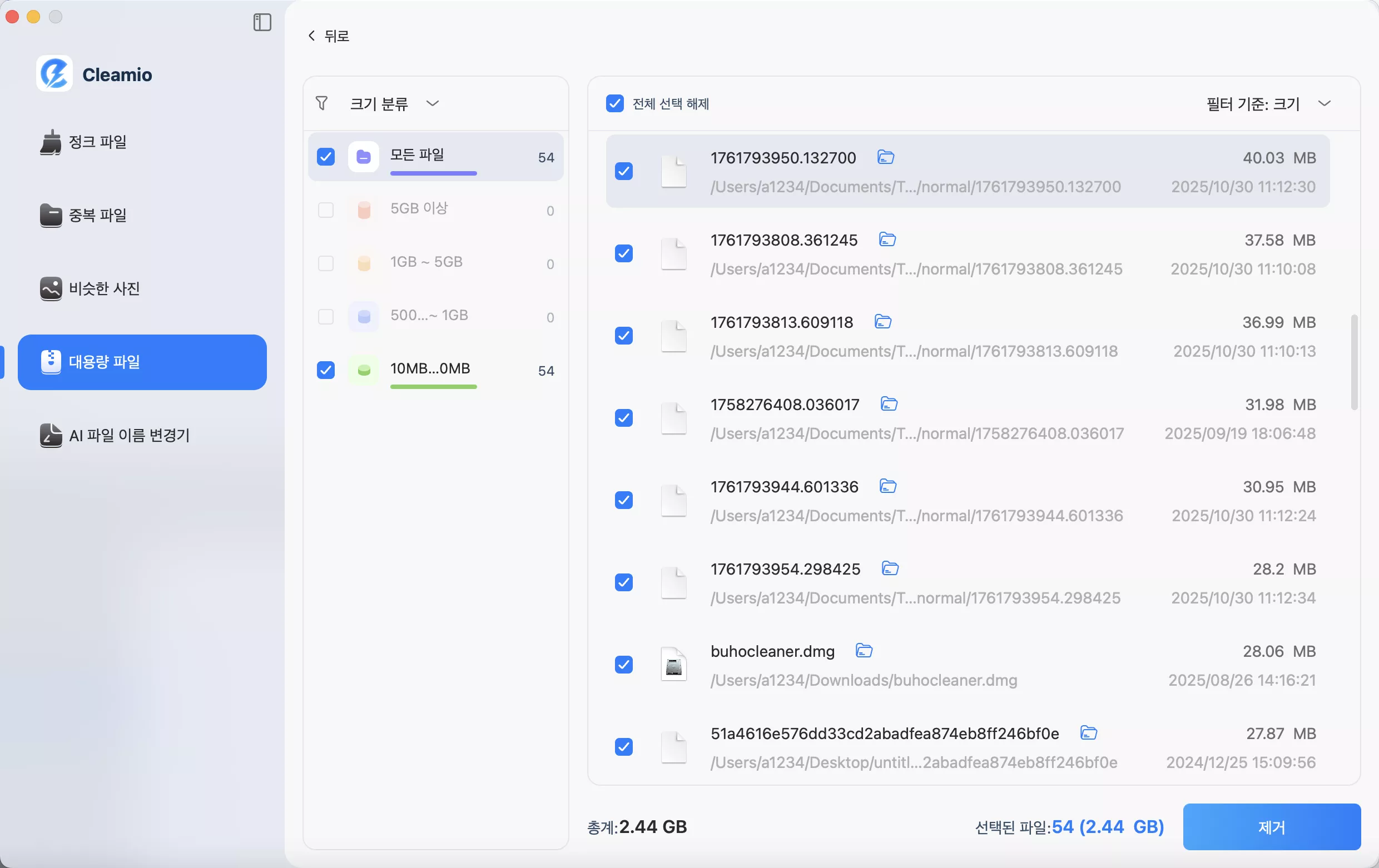 Mac 기기의 공간을 확보하려면 가장 효율적이고 간단한 방법은 Tenorshare Cleamio를 이용하는 것입니다. Mac에서 대용량 파일을 찾고 삭제하는 데 있어 효율적이고 사용자 친화적인 접근 방식을 제공하는 이 도구를 추천드립니다.
