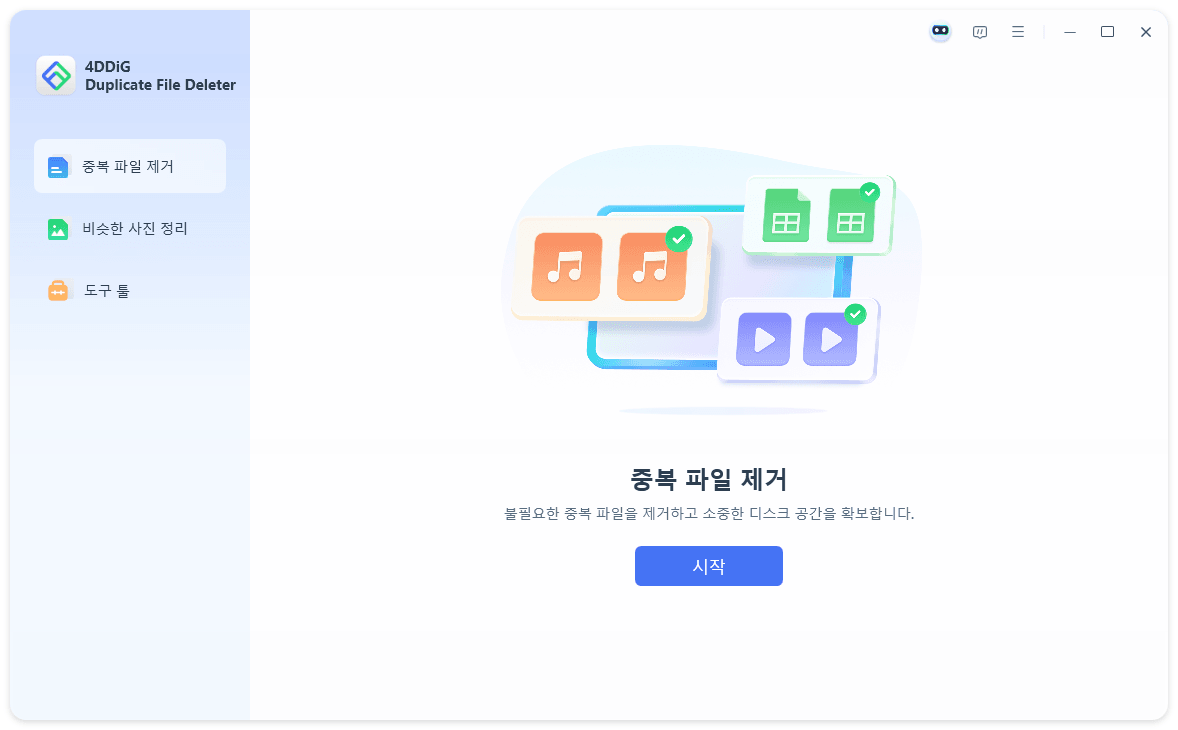 1. 4DDiG Duplicate File Deleter 실행 → “중복 파일” 클릭 후 “시작” 선택