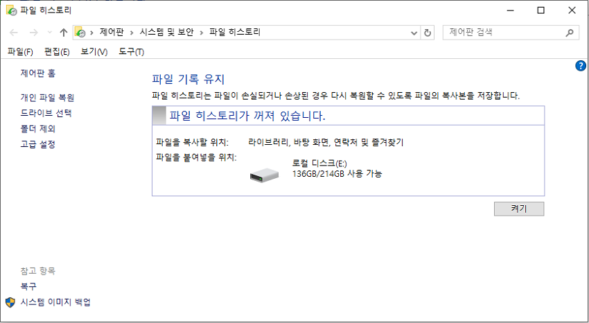- 파일 히스토리(File History) – 이전 버전으로 파일을 복원 가능
