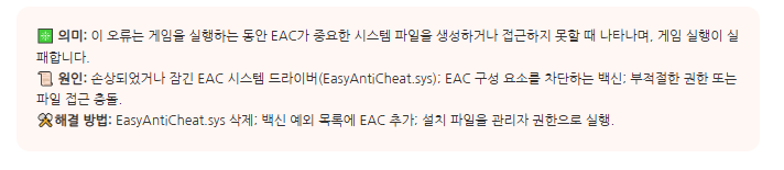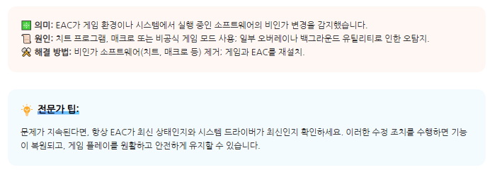 하지만 easy anti cheat detected 오류나 게임 실행 불가 문제가 여전히 발생한다면,