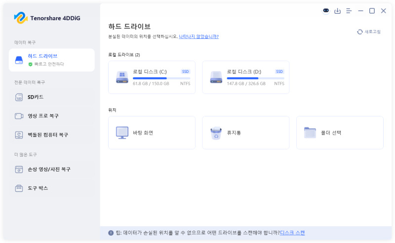 [공식] Tenorshare 4DDiG Windows 무료 데이터 복구 프로그램
