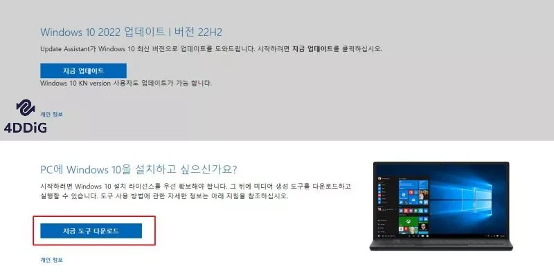 - Microsoft 공식 Windows 10 다운로드 페이지 접속