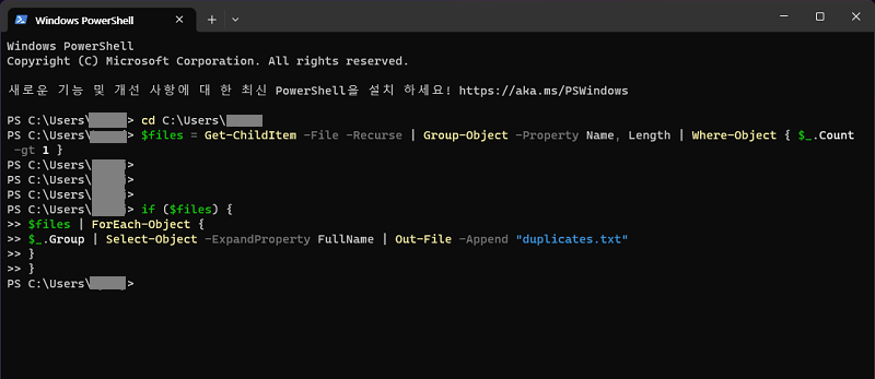 IT에 어느 정도 친숙한 분들이라면 PowerShell을 활용한 방법도 추천드려요. 파일의 해시값을 비교해서 정확한 중복을 찾아낼 수 있습니다.