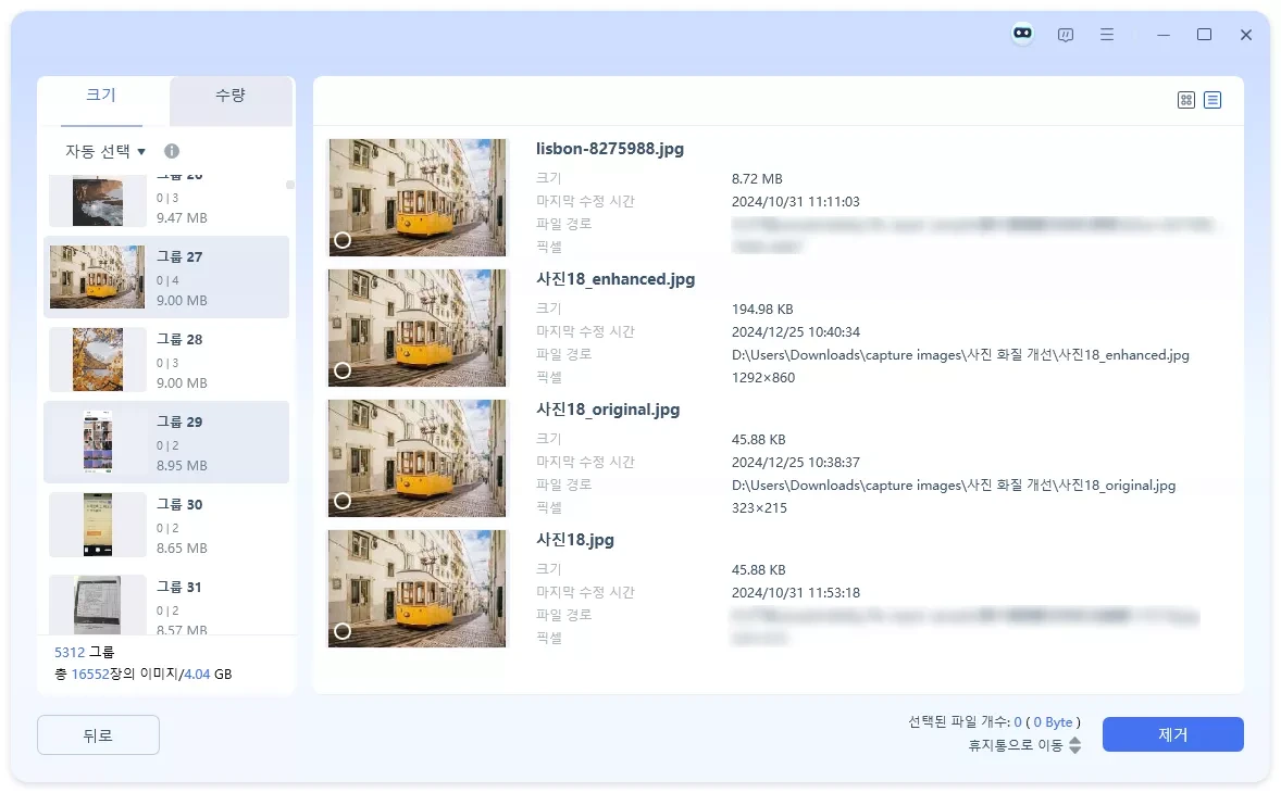 단순 정리에서 끝나는 게 아니라 중복과 유사 이미지까지 정리하려면 전용 프로그램을 사용하는 것이 훨씬 효율적입니다.